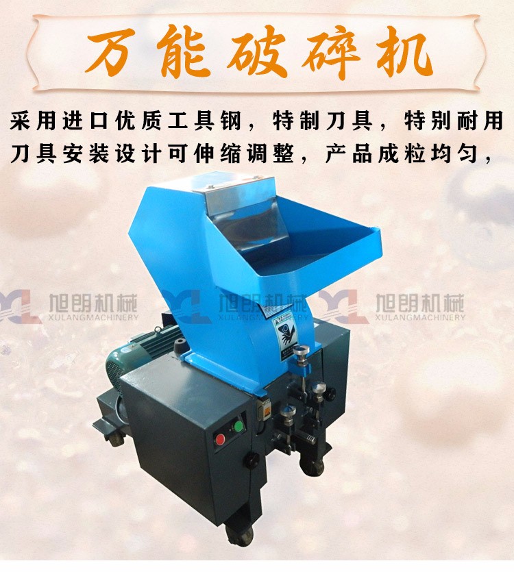 本機適用于中草藥、化工材料、硬度較低的礦石以及聚苯乙烯、聚丙烯、尼龍、工程塑料和聚氯泡沫軟料的廢、次品或注射噴頭等破碎之用。如更換相應(yīng)的篩孔板,并調(diào)整刀片間隙,還可破碎各種吹塑膜、壓延膜、薄片、薄板等塑料廢品。