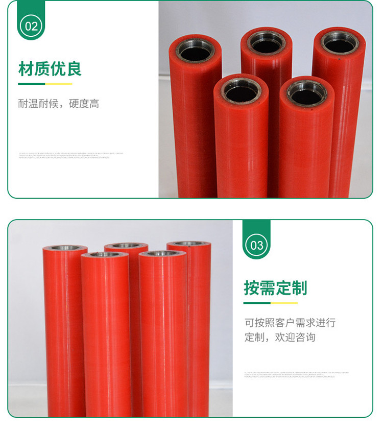 聚氨酯膠輥輪具有高強(qiáng)度、抗壓、耐磨、耐油、耐酸堿、耐腐蝕、耐撕裂、抗沖擊、硬度范圍廣泛,與金屬粘接牢固不脫膠等特點(diǎn),被廣泛應(yīng)用于冶金、造紙、電子、化纖、木材加工、紡織、印刷、印染陶瓷、礦山、傳動(dòng)等各種行業(yè)。