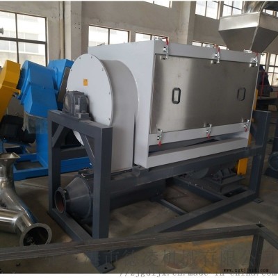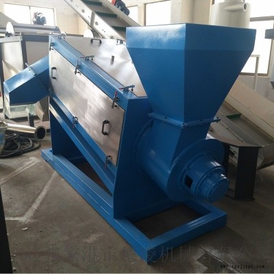 2. 破碎后的薄膜經(jīng)過螺旋上料機(jī)送入摩擦洗機(jī),螺旋上料機(jī)由進(jìn)水口,進(jìn)行清洗沖洗,底部有濾網(wǎng)將泥沙、污水排出。摩擦洗料機(jī)高速旋轉(zhuǎn),加水清洗。底部排污。根據(jù)農(nóng)膜泥沙的多少可采用多道摩擦洗料機(jī),