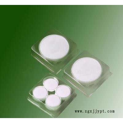 尼龍(聚酰胺)微孔濾膜本品材料為脂肪族尼龍,有良好的親水性,耐適當濃度的酸堿,不僅適用于含有酸堿性的水溶液,亦適用于含有機溶劑,例醇類、烴類、醚類、酯類、酮類,苯和苯的同系物,二甲基甲酰胺,二甲基亞砜等等,是適用范圍**的微濾膜之一??讖竭x用原則同混纖膜,即除微粒采用公稱孔徑0.65、0.8、1.2微米,除菌采用公稱孔徑0.45、0.3、0.22微米。濾液中微?;蚣毦^多時**須預過濾,原則同混纖膜。若短期過濾[數(shù)個小時],則本品耐20%濃度的甲酸,和30%HCL含量的**以及相當此酸度的其它酸,耐3%**濃度的堿,但若長期接觸以上濃度的酸堿,會引起尼龍酰胺鍵的斷裂從而膜變脆,故只宜在以上濃度酸堿的下限使用,使用溫度越低,遇酸堿直不變脆。本品使用前,應進行清洗處理,用蒸餾水浸泡洗凈后裝于濾器內(nèi),有機溶劑的過濾則用乙醇浸泡清洗。使用要求較高的場合,例色譜樣品或試劑的過濾,若是水系的,蒸餾水洗凈后,再蒸餾水預過濾,若有機系過濾**先將本品在純**和95%以上的乙醇中分別浸泡過夜,再純**和純乙醇預過濾,徹底洗凈膜后使用。本品入水后顯著變脆,入有機溶劑強度的減少則輕些,故本品的使用應在膜下墊60-100目尼龍網(wǎng)或金屬網(wǎng),可無膜破之虞。本品有正反面,亮光強的為反面,亮光弱的為正面,膜內(nèi)孔徑從正面到反面逐漸遞減。使用時應將正面對著待濾液,即待濾液從亮光弱的一面流入,濾凈液從亮光強的一面流出,欲截留微粒相當于經(jīng)歷了孔徑從大到小多層濾膜的阻截而不易堵塞,可顯著延長使用壽命。使用時應在膜處理前認好正反面,(光線從側面照膜可以比較出),作上記號,入水后正面將難以分辨。廠定技術標準如下:公稱孔徑(微米)水流量ml/cm2、min孔隙率%含氣泡點壓力范圍(mPa)膜厚度(微米)膜形態(tài)(平整) 0.8 150 81 0.11-0.13 120-140 " 0.65 100 80 0.13-0.19 " " 0.45 40 79 0.19-0.28 " " 0.3 36 77 0.28-0.38 " " 0.22 18 75 0.38-0.46s " "