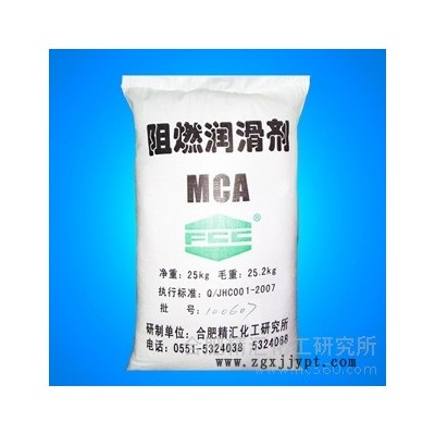 阻燃潤(rùn)滑劑MCA兼有阻燃和潤(rùn)滑性能的多功能助劑,含氮量>48%,在橡膠、塑料,特別是在尼龍中適量添加即可起到明顯的阻燃作用;熱穩(wěn)定性好,在300℃下長(zhǎng)期加熱,其熱損失很低。同時(shí),其具有與石墨相似的層狀結(jié)構(gòu)和良好的潤(rùn)滑性能,可在高溫、高壓、高載荷、沖擊載荷條件下使用;在高溫、高速、低溫、低速或溫差急劇變化的條件下具有穩(wěn)定的潤(rùn)滑特性。 MCA可部分取代二硫化鉬和聚四氟乙烯,是一種潤(rùn)滑效果**的材料。