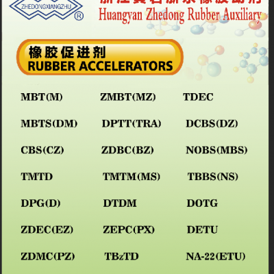 促進劑: M、DM、MZ、DBM、CZ、NS、DZ、NOBS、NA-22、