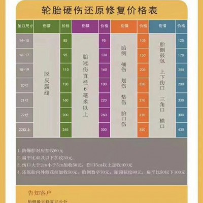可以硫化轎車輪胎的任意傷口,無論在任何部位。只要是20厘米以下的傷口都可以修復如初。修理部位與輪胎同壽命,終身保修。