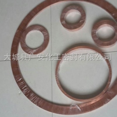 紫銅墊片:選用各種板材,使用的zui高溫度是600度。實(shí)用壓力6.3-250bar。主要用于閥門法蘭連接處,密封性能良好。規(guī)格從DN15-DN900.供應(yīng)大直徑紫銅密封墊片