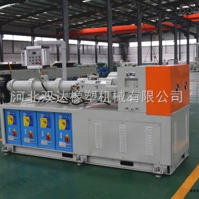 的構(gòu)成: 包括電機(jī)、減速箱、喂料裝置、機(jī)筒、螺桿、機(jī)頭、溫控裝置、真空泵、電控柜。