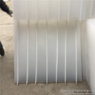 焊接成型后的斜管填料**像蜂窩一樣,其橫截面是正六邊形,因其形狀和蜂窩類似,因此也叫做蜂窩斜管填料。焊接成型后的斜板填料,其橫截面是長方形的。這是兩者直觀的不同。如果是沒有焊接的散片,又該怎樣區(qū)分二者呢。蜂窩斜管填料的散片是一張張一模一樣的波浪形塑料片,斜板填料的散片則是一張張平直的塑料片和一根根塑料條。也**是說,有窄長條的是斜板填料,沒有的是斜管填料。