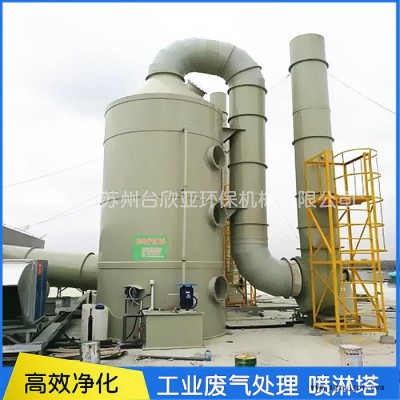 噴淋塔也是處理酸堿廢氣,有機(jī)廢氣比較常用的高凈化設(shè)備,其PP材質(zhì)具有抗風(fēng)化、耐酸堿腐蝕等特性。