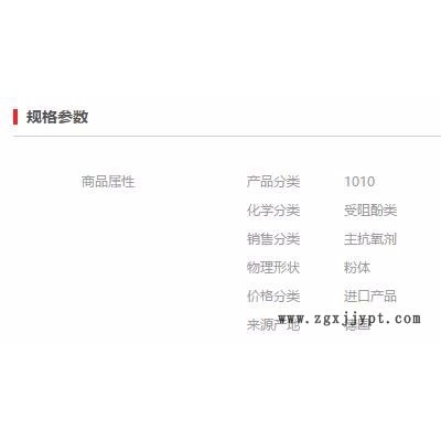 >產(chǎn)品供應(yīng)>橡塑助劑>老化性能助劑>抗氧劑>【萬水化工商城】 巴斯夫進(jìn)口抗氧劑1010 復(fù)合抗氧劑 受阻酚 電線電纜抗氧化劑 塑料抗老化劑抗黃邊抗氧劑(價(jià)格面議) 紫外線吸收劑,增白劑,臘粉,銅金粉,夜光