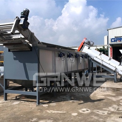 供應PP編織袋噸包袋清洗破碎生產線主要處理農業(yè)廢棄薄膜(農膜、地膜、大棚膜、煙草地膜等),目前國內各地處理廢棄農業(yè)薄膜以集中化處理回收加工,對設備自動化要求程度提高。綠豐機械憑借多年涉足東莞PP編織袋回收流水線設備廠家價格廢舊薄膜破碎清洗線制造,設備不斷更新改進升級,目前多項專利技術解決了行業(yè)眾多難題,技術水平遠超同行業(yè)。廢棄薄膜收集回來后首先進行預處理切斷或撕碎,使大卷成捆的廢舊薄膜成小塊狀,然后投入至除沙機中進行除沙處理,泥沙含量過高會使破碎機刀具壽命變短,影響清洗質量。經過除沙過后的薄膜進入破碎機中進行細碎處理,破碎時加注水進行破碎,可以起到初步清洗的作用,破碎機底部配圖洗脫機,可以將物料上的泥沙及臟水甩出,甩干過的薄膜進入強力摩擦洗料機中進行摩擦清洗,此段加注水進行摩擦清洗,此機為我公司專業(yè)為地膜除沙清洗而設計,清洗泥沙在99%以上,清洗過后的薄膜進入沉浮漂洗水槽中進行漂洗,漂洗完的薄膜料由挖料機挖入擠干機中進行擠干脫水。后續(xù)可接造粒機制成顆粒。